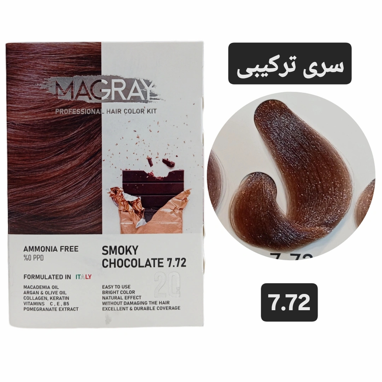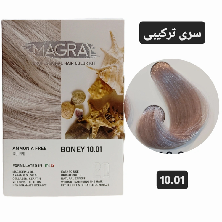 کیت رنگ موی بدون آمونیاک ماگرای، یک محصول آرایشی برای رنگ کردن مو است که بر خلاف رنگ موهای معمولی، حاوی آمونیاک نیست. این کیت شامل یک کرم رنگ مو، اکسیدان، ماسک مو و دستکش است و در 43 رنگ متنوع عرضه میشود.