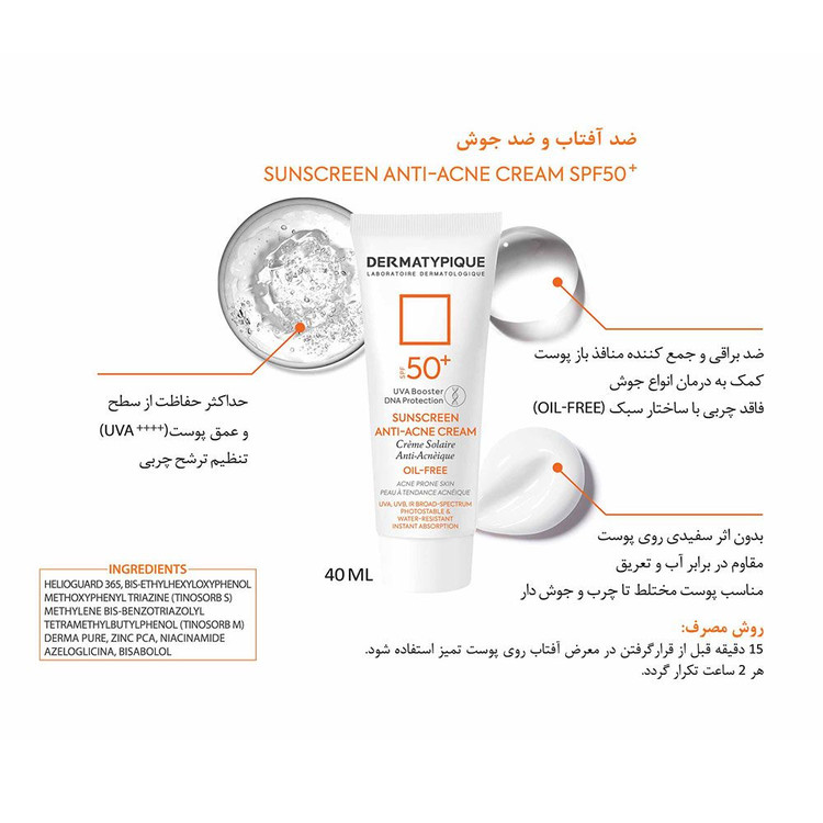 ضد آفتاب پوست چرب و جوشدار +SPF50 درماتیپیک
