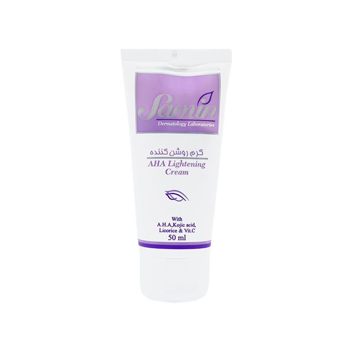 کرم ثمین روشن کننده، حاوی آلفاهیدروکسی اسید، به صورت کمپلکسی از اسید چند میوه است؛ از این طریق لایههای سطحی و مرده اپیدرم را لایه برداری کرده و سبب رفع لکهای پوستی و روشن شدن آن میشود.