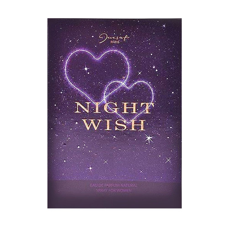 نایت ویش رایحه ای نادر ، پر از احساس و ظریف است. تصویری از رویای شب، رایحه ای زنانه که با عطر گُل های تازه و خوراکی در هم آمیخته است. نت اصلی این ترکیب گاردنیای سحرآمیز، تازه، پر احساس، درخشان و مخملی است. نت های میانی نارگیل، گاردنیا، شکوفه نارنج و گل صد تومانی هستند که در انتها با عطر عنبر و مشک موجود در بطن این رایحه، ایجاد حسی تاریک و مرموز و متمایز می کنند.