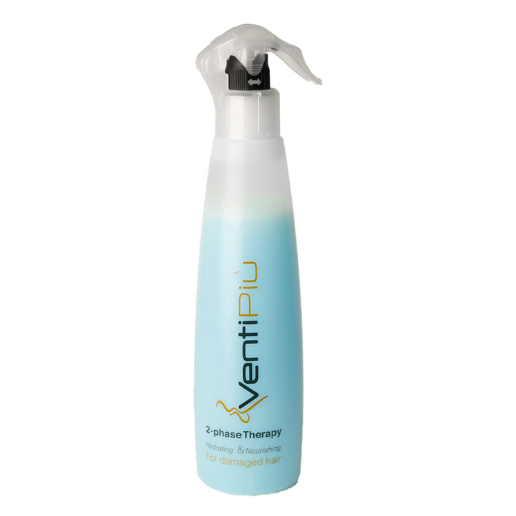 اسپرى دو فاز آبرسان VentiPiu، از دو فاز سیلیکون و آبرسان تشکیل شده است. بخش سیلیکون باعث لطافت و شفافیت مو شده و بخش آبرسان با استفاده از موادمعدنی موهای آسیبدیده را درمان میکند. اگر موهای آسیبدیده یا دکلره شده دارید، استفاده از اسپری دوفاز آبرسان ونتی پیو به شما توصیه میشود. این اسپری حاوی عصاره ابریشم دریایی است که موهای آسیبدیده را به خوبی تقویت میکند. این اسپری باعث میشود موهای شما در مقابل حرارت اتو و سشوار مقاوم بوده و به دلیل نرمی و لطافتی که به موها میبخشد شانه کردن را آسان میکند.سرم دوفاز ونتی پیو حاوی ویتامینها و مواد مورد نیاز مو میباشد که باعث افزایش مقاومت مو در برابر آسیبهای محیطی میشود. این سرم با کیفیت بالا تولید شده و بدون ایجاد چسبندگی و ایجاد چربی بر روی مو باعث از بین رفتن گرهها شده و همزمان ساختار مو را احیا میکند. اسپری ترمیم کننده Ventipiu، نیاز به آبکشی ندارد و به همین دلیل برای مصرف روزانه بسیار مفید است. روش مصرف آسانی دارد و به راحتی میتوانید با اسپری کردن آن روی موهای تمیز خود حالت خشک موها را بدون ایجاد چربی از بین ببرید و موها را شفاف و ابریشمی کنید. همچنین با این کار موی شما از موادمعدنی بهره برده و تقویت میشود.