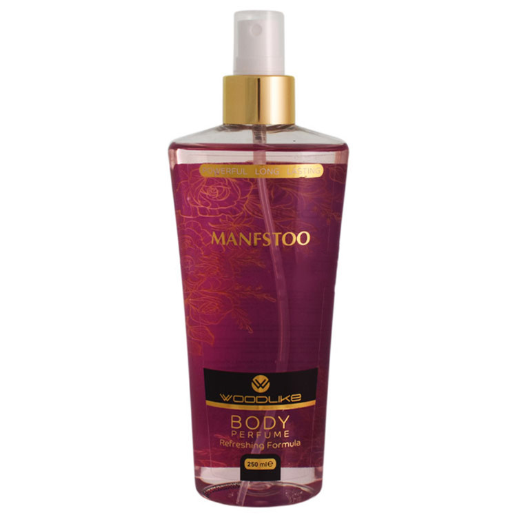 بادی اسپلش زنانه وودلایک مدل Manfstoo بر گرفته از ادو پرفیوم زنانه منیفستو بوده که در سال 2012 در کشور فرانسه معرفی شده است. این محصول دارای رایحه گرم و شیرین است و به دلیل غلظت بالای اسانسی که دارد از پخش بو و ماندگاری بالایی برخوردار میباشد. این محصول در حجم 250 میلی لیتر قابل استفاده بر روی بدن بوده و به دلیل وجود ترکیب گلیسرین در این بادی اسپلش رطوبت مورد نیاز پوست تامین شده و پوست بدن در برابر خشکی محافظت میشود.