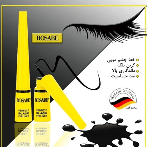 خط چشم مویی Perfect Black رزابه | 2.5 میل خط چشم مویی رزابه با استفاده از فرمولاسیونی منحصر به فرد تولید شده است که باعث میشود رنگ آن بسیار مشکی و عمیق باشد. این خط چشم همچنین دارای ماندگاری بالایی در طول روز است و در برابر تعریق و رطوبت مقاوم است.