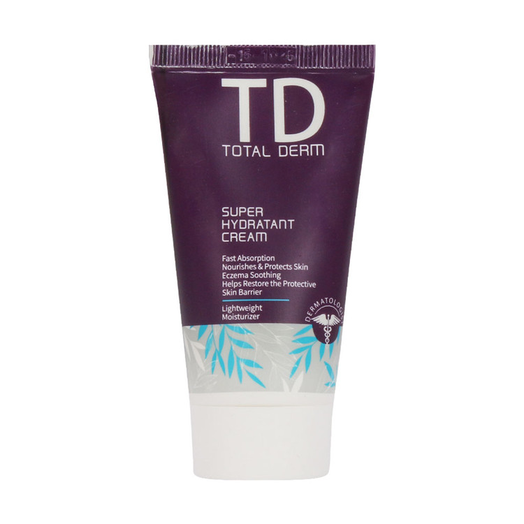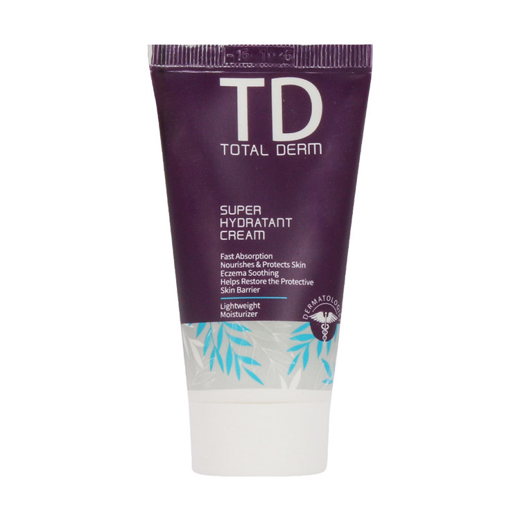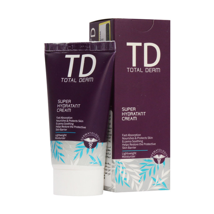 کرم سوپر آبرسان و مرطوب کننده توتال درم تحت لیسانس کشور فرانسه است و از خشکی پوست جلوگیری میکند. همانطور که میدانید خشکی پوست به دلایل گوناگونی همچون استحمام طولانی مدت با آب داغ، کم آبی بدن، استفاده مکرر از شویندههای شیمیایی قوی و ابتلا به برخی از بیماریها نظیر اگزما و دیابت بوجود میآید. خوشبختانه کرم آبرسان و مرطوب کننده توتال درم مدل super به سبب ترکیبات موثر خود، رطوبت مورد نیاز بافت پوست را تامین نموده و با ایجاد یک سد دفاعی از تبخیر آن و در نهایت خشکی پوست جلوگیری میکند.