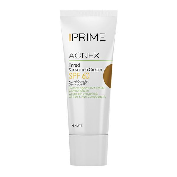 کرم ضد آفتاب رنگی فاقد چربی پرایم مدل Acnex با SPF60، با قابلیت کنترل ترشح سبوم باکتری های مولد آکنه را مهار می کند. ضد آفتاب فاقد چربی پریم خاصیت ضد آکنه دارد و مناسب پوست های چرب و آکنه دار می باشد. محافظت از پوست در برابر اشعه آفتاب اولین قدم برای مراقبت پوست می باشد. این کرم یک لایهی محافظتی در برابر اشعه UVA، UVB و IR روی پوست ایجاد میکند. این محصول فاقد هرگونه چربی است و کنترل کننده ترشح سبوم، ضد آکنه و ضد باکتریهای مولد آکنه نیز می باشد. کرم ضد آفتاب رنگی پریم با قردرت محافظتی 60 برای پوستهای چرب و آکنه دار بسیار مناسب است.